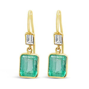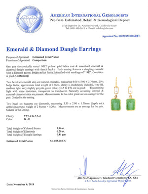 1.96 Carats Colombian Emeralds 0.20 Carats Diamonds 14K Gold Earrings