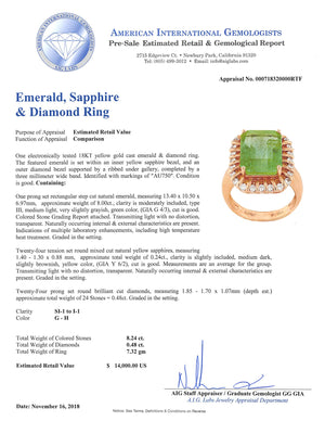 Weight of Colored Stones: 8.24 cts.