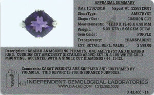 10 Karat White Gold and 6 CTW amethyst Ring and Diamonds